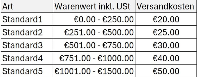 Die Versandkosten sind bei uns nach dem Bestellwert gestaffelt.